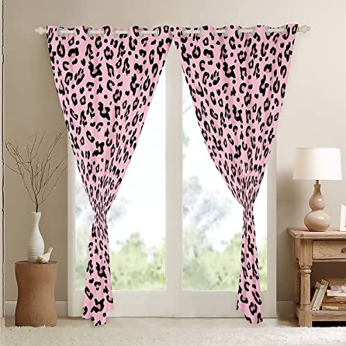 Pink Leopard Curtains Wild Animal Cheetah Window Curtains for For Kids Boys Girls Children Teens Africa Wildlife Window Drapes Window Treatments,W46*L72