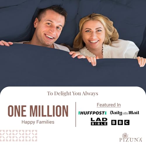 Pizuna 100% Cotton Double Bed Sheet Set Dark Blue, 400 Thead Count Long Staple Cotton Bedding Set 230×280 cm, Soft Sateen 4 PC Double Bed Sheet Set – Fitted Sheet, Flat Sheet & 2 Pillowcases