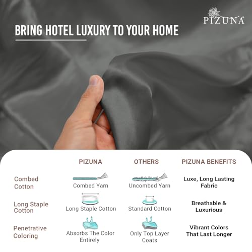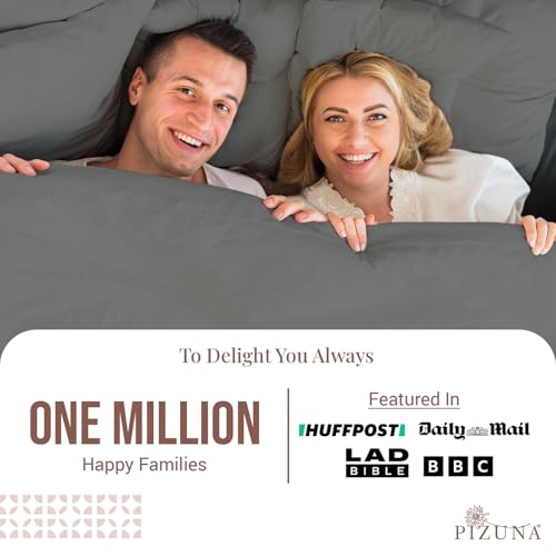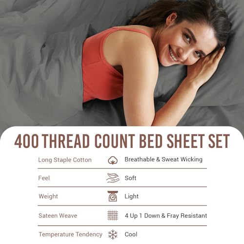 Pizuna 100% Cotton King Size Sheet Set Dark Grey, 400 Thead Count Long Staple Cotton Bedding Set 275×280 cm, Soft Sateen 4 PC King Bed Sheet Set -Fitted Sheet, Flat Sheet & 2 Pillowcases
