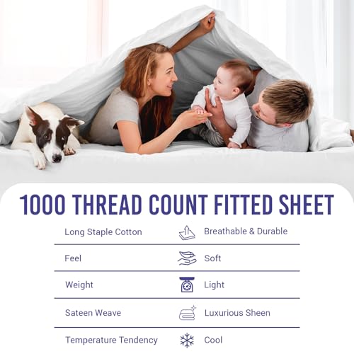 - Comfort & Luxury: Experience comfort in these densely thick 1000 Thread Count Sateen Weave fitted sheets king size, precisely woven from 100% long-staple combed cotton. Our minimal artificial processing & compacted yarn creates a breathable fabric with its heavy texture. Its skin friendly, sweat-wicking and temperature regulating that ensures a sleep experience worthy 5-star hotel, offering a royal look and feel.