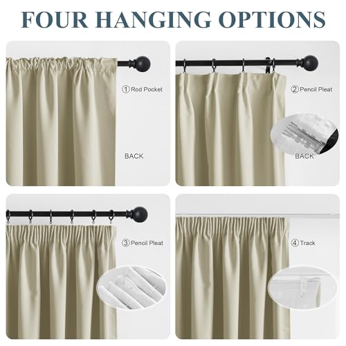 - 【Multiple Hanging Options】- (1) Pencil pleat with triple gathering tapes (hook-adjustable fullness). (2) Rod pocket design (fits ≤1.6" rods). Premium polyester construction ensures lasting shape and styling flexibility