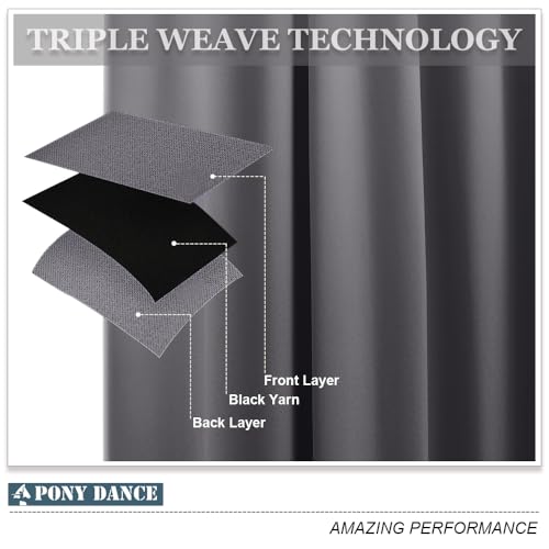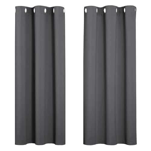 PONY DANCE Blackout Energy Saving Curtains with Eyelet – Grey Thermal Insulated 37×54 Inch 2 Panels for Living Room, Kids' Room, Bedroom, Kitchen