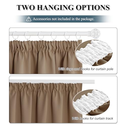 PONY DANCE Blackout Window Curtains – Top Pencil Pleat Light Block Wide Curtain Drapes for Thermal Insulated Solid Window Treatment for Home Decoration 2 Panels, W90 X L90, Cappuccino