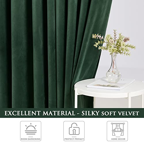 PONY DANCE Dark Green Velvet Curtains – Thermal Eyelet Blackout Curtains Soundproof & Room Darkening Window Treatment for Living Room/Bedroom, 52×84 Inch