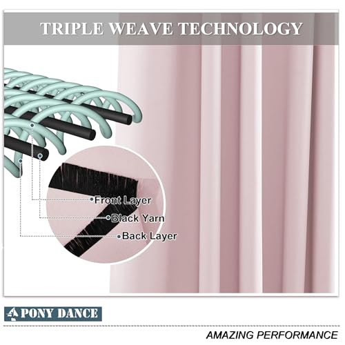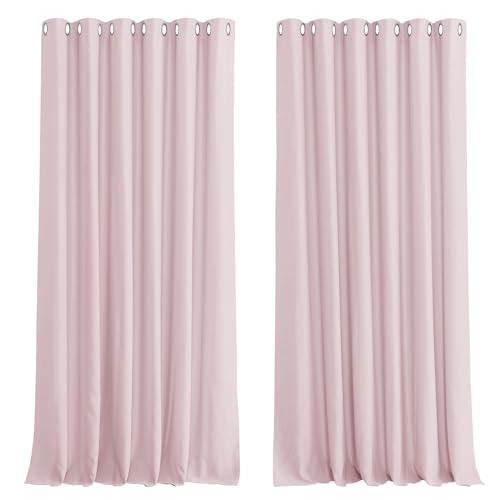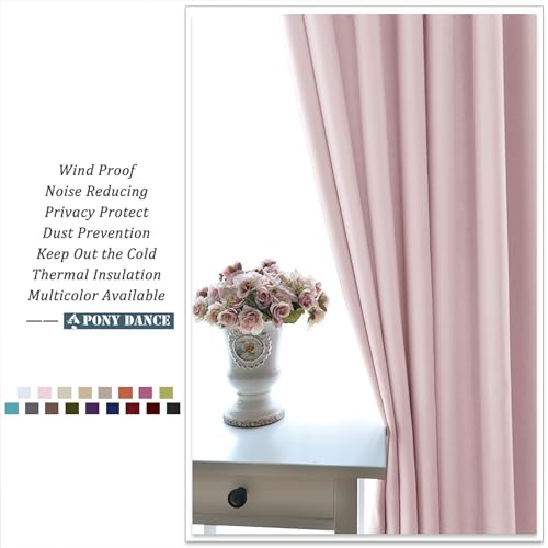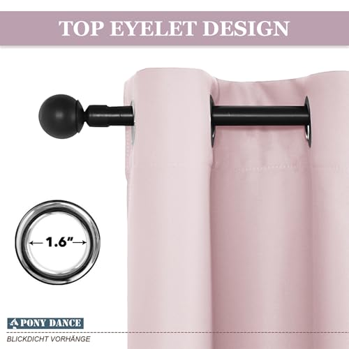 PONY DANCE Extra Wide Hotel Blackout Curtains for Living Room – Girls Bedroom Thermal Insulated Door Curtains Eyelet for Bedroom/ Nersery Lounge Drapes, 2 Panels, W90 x L90, Pink