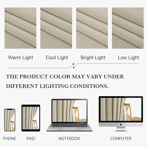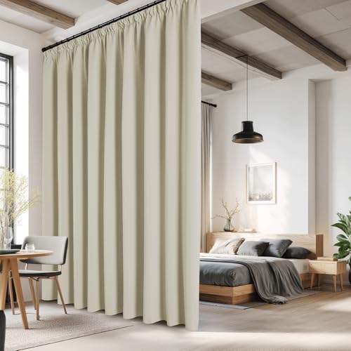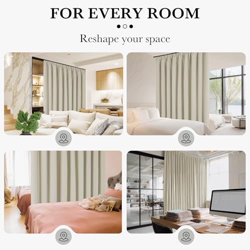 PONY DANCE Room Divider Curtain for Hotel Bedroom – Pencil Pleat Thermal Insulated Curtain Super Soft Extra Long and Wide Energy Saving Window Treatment, 1 Panel, 118 x 102 Inch, Light Beige