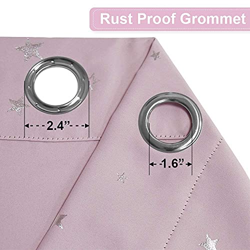 PONY DANCE Star Curtains for Bedroom – Eyelet Printed Star Pattern Blackout Curtains 52 x 63 inch for Light Block & Room Darken Home Décor Kids Preteen Drapery, Light Pink, 2 Panels