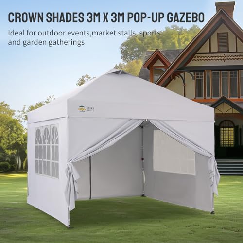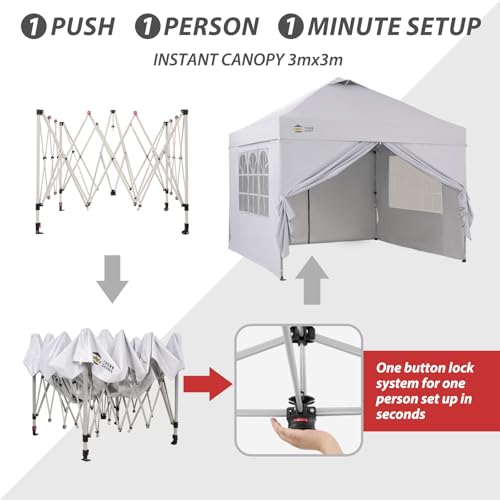 Pop Up Gazebo with 4 Sides, 3m x 3m Waterproof Pop Up Tent, Center Lock One Push Instant Garden Shelter, Heavy Duty Gazebo with Carry Bag, Bonus 8 Stakes and 4 Ropes