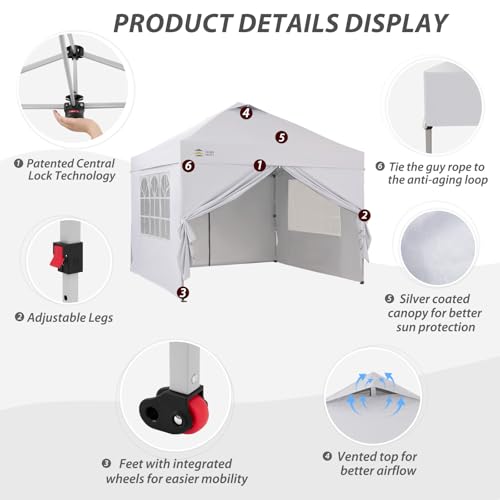 - Instant Setup Technology: Our pop up gazebo features patented one-push center lock technology that secures all four legs with a single press. The advanced tool-free design allows two individuals to set up the gazebo quicker than conventional models, ideal for impromptu gatherings and bustling markets.