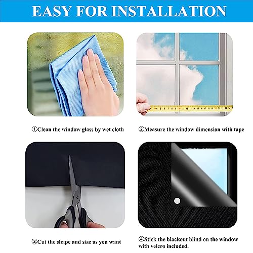• CUSTOMIZABLE BLACKOUT CURTAIN: Blackout Blinds Stick On come in a range of sizes and can be easily trimmed to fit any window dimensions. This customization feature allows users to achieve a perfect fit, ensuring that no light seeps through the edges and providing maximum darkness.