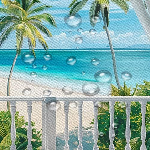 PZMPZM Tropical Beach Shower Curtain Blue Ocean Palm Tree Wooden Windows Balcony Summer Seaside Nature Scenery Home Bathroom Polyester Fabric Curtains with Hooks 70Wx70H Inch