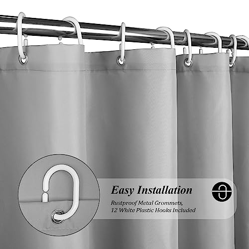 - ✔【Durable and Long lasting】 Reinforced top header with 12 rustproof grommets prevents from tearing and allowing you to use this waterproof fabric shower curtain for years to come. Comes with 12 shower curtain hooks for easy installation.