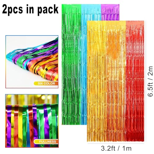 Rainbow Tinsel Curtain Party Backdrop,2pcs 3.2ft x 6.5ft Foil Curtain Decor,Rainbow Foil Fringe Streamers Metallic Tinsel Door Hanging Foil Flow Silk Streamers for Birthday Wedding Holiday Party