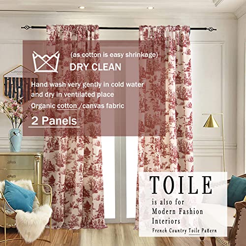 Red Curtains Drapes 84 Inch Length for Dining Room Decor,Pretty Toile Pattern Print Cream White Blackout Floral Farmhouse Christmas Country Cute Curtain for Living Bedroom Window Set 2 Panels Burgundy
