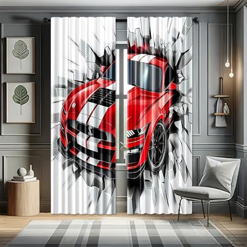 Red Sports Car Blackout Curtains Panels 3D Speed Racing Eyelet Curtain Full Room Darkening Privacy Thermal Insulated Energy Saving Decorative Window Treatments for Bedroom, W66" x L90" x 2 Panels