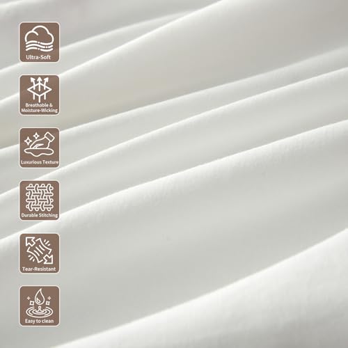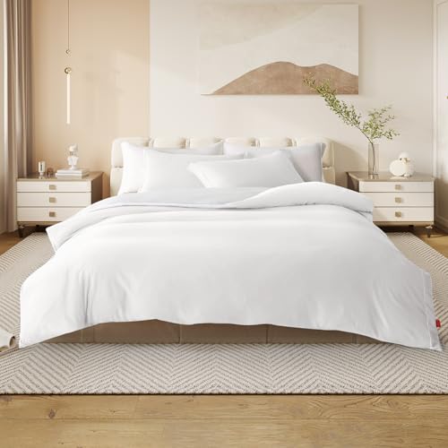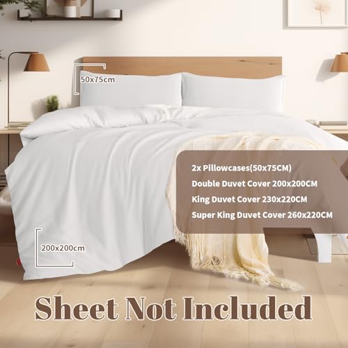 Ressden Bedding Duvet Cover Set with 2 Pillowcases – 400TC Organic Cotton, 3-Side Zipper, Super King Size Luxury Bedding Sets, Cloud White
