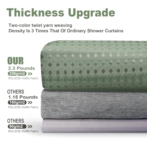 ROLIZOE Green Shower Curtain – 256GSM Luxury Weighted Waffle Textured Heavy Duty Thick Fabric Shower Curtains with Stainless Steel Hooks for Bathroom, Superior Water Resistant, 183W x 183H, Green