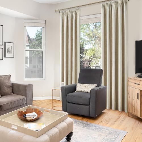 Rosehill Designs Full Blackout Curtains Pencil Pleat Thermal Curtains with Solid Colour Energy Saving Drapes for Living Room Bedroom, Dark Linen, 56 x 90 Inch, 2 Panels