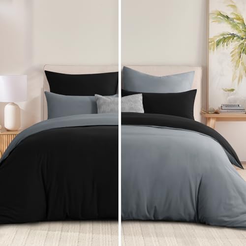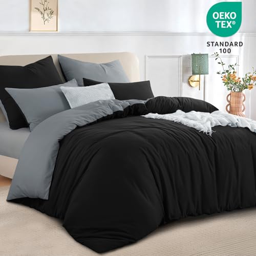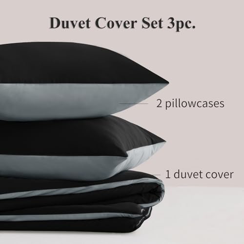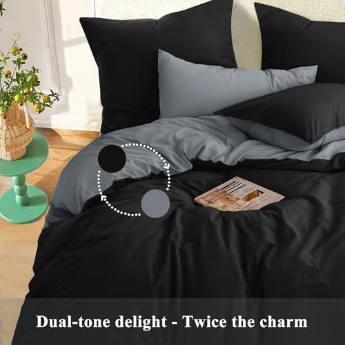 RUIKASI Black Double Duvet Set Grey – Reversible Black Duvet Cover Double Bedding Set with Zip, Soft Brushed Microfibre Double Bed Set Quilt Cover with 2 Pillowcases