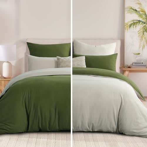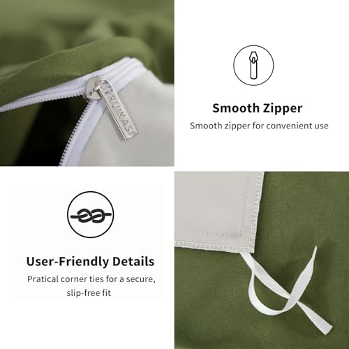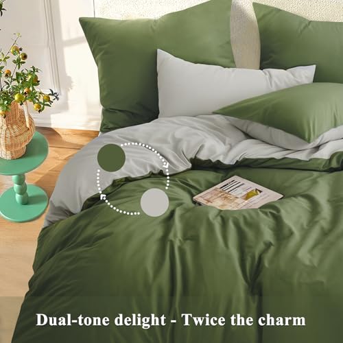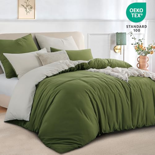 RUIKASI Olive King Size Duvet Cover Sets Beige – Reversible Green Duvet Cover Kingsize Bedding Set with Zip, Soft Brushed Microfibre King Bed Duvet Set Quilt Cover with 2 Pillowcases