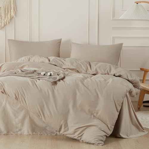 SAPHREAS Beige Duvet Cover Set 100% Cotton Super King Size 3Pcs Simple style Plain Bedding Soft Comforter Cover Set 1 Duvet Cover with Zipper 2 Pillow Shams, Comforter Not Included