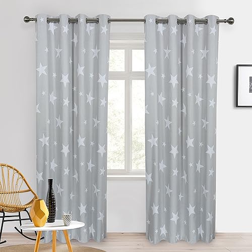 - STAR PATTERNS DESIGN: Our grey blackout curtains create a warm, comfortable haven for you to unwind at the end of a long busy day. The star pattern design is a great fit for kids' bedroom or playroom. Make the room as the starry sky. Your kids can dream and play in the beautiful room. Perfect decorative eyelet curtains for the bedroom, living room, kids room, etc.