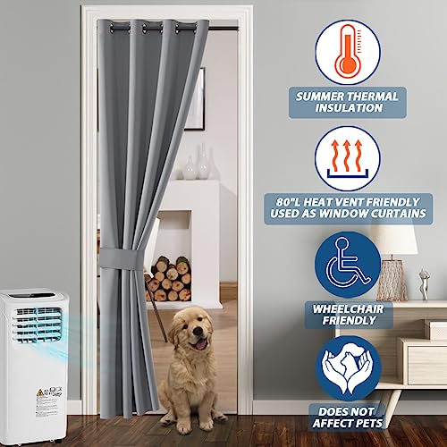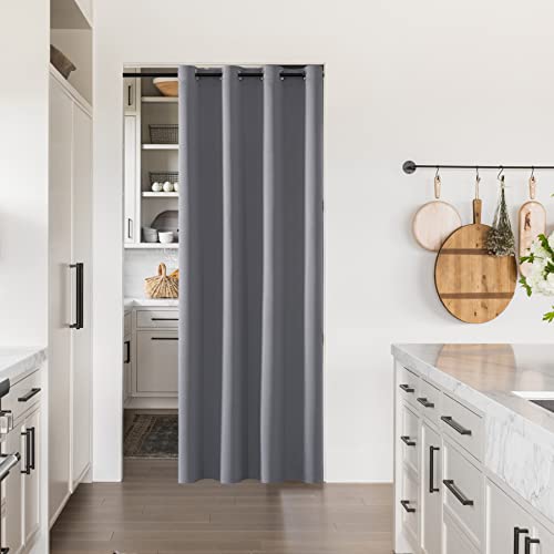 SHINELAND Door Curtains for Doorway Privacy,80 Inch Length,Thermal Insulated Blackout Single Panel Drape Room Divider Cover/Shade,Temporary Closet Curtain for Bedroom Closet Door,Light Grey