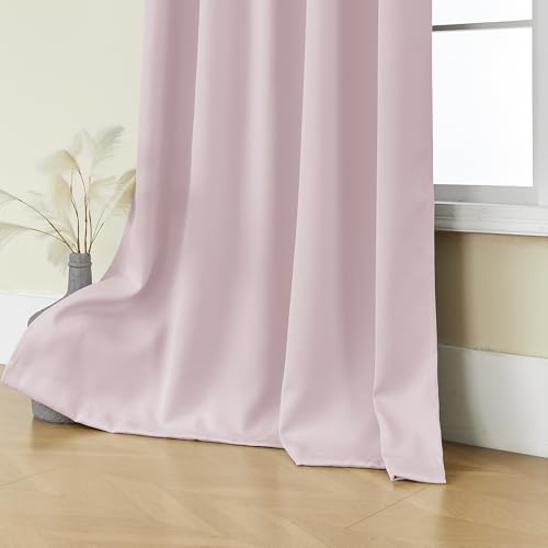 SHINELAND Pink Blackout Curtains 84 Inches Long 2 Panels Blackout for Nursery Baby Room,Back Tab Pleated Light Pink Thermal Insulated Darkening Window Noise Reducing Curtains for Bedroom Living Room