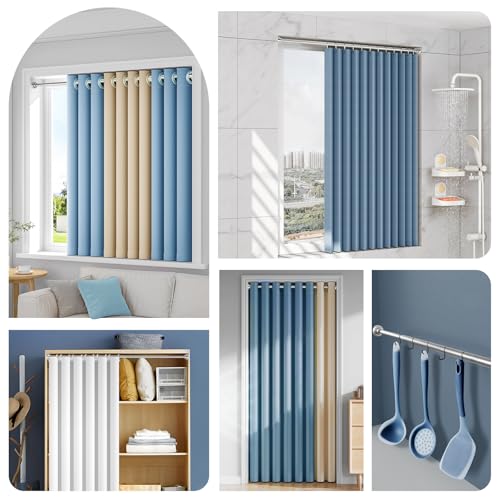 - ☑ Suitable for Versatile Use Purposes — This adjustable tension rod meets various use purposes in bathrooms, bedrooms, living rooms, kitchens, balconies, walk-in closets, dining rooms. Not only as a shower curtain rod, but also as a door or window curtain rod, wardrobe rod, hanging rod, clothes rail, etc.