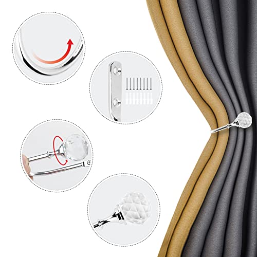 Shoze 2Pack Metal Crystal Ball U-Form Wall Mounted Curtain Tie Backs Hooks Decorative Drapery Holdbacks With Screws