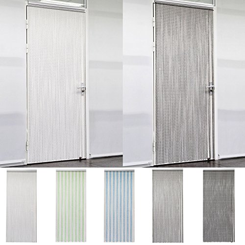 Shoze Aluminium Chain Curtain 214 x 90cm Door Fly Screen Insect Bug Screen Strip Blinds String Door Curtain Keeps Out Flies Wasps Pest Insect & Bees for Doorways Divider Silver