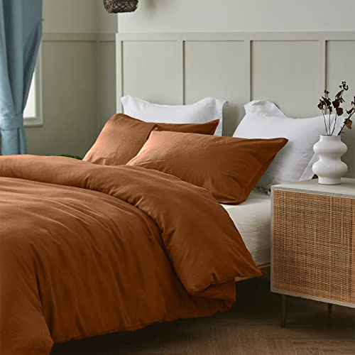 Simple&Opulence Linen Duvet Cover Double,Natural Linen Cotton Duvet Cover with Pillowcase,Duble Size Bedding Set,Soft Warm Breathable Bed Quilt Cover with Button Closure,200x200cm,Pumpkin