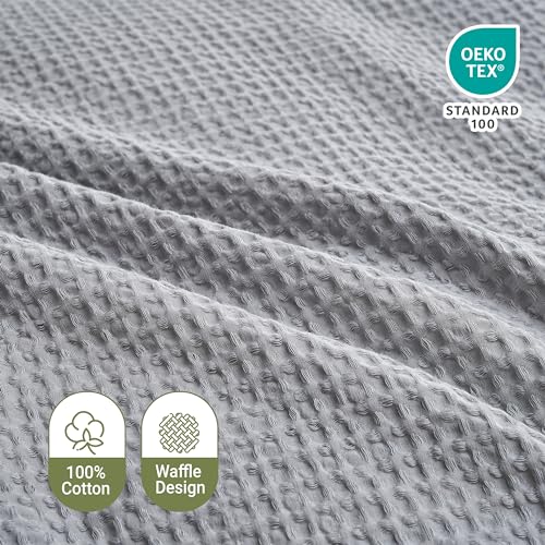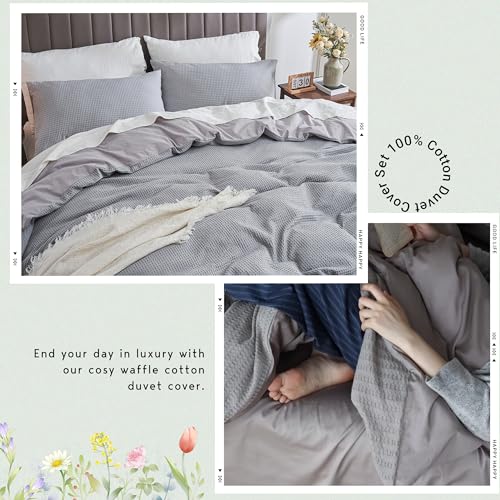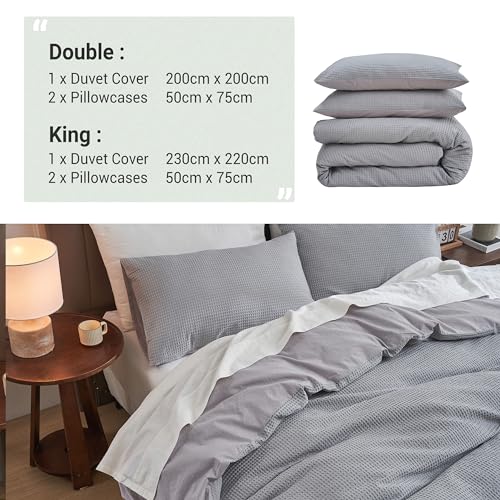 Simple&Opulence Waffle Duvet Cover King Size, 100% Cotton Waffle Bedding with 2 Pillowcases, Soft Breathable Seersucker Quilt Cover Set, Hidden Button Closure (230x220cm,Grey)