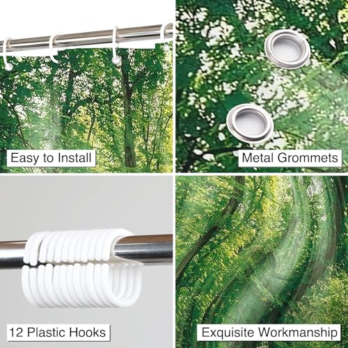 Simpomsy Green Forest Shower Curtain, Green Jungle Tall Trees Sunshine Shower Curtains, Nature Landscape 3D Scenery Bathroom Curtains, Waterproof Fabric Bathroom Decor Set with Hooks 180x180cm