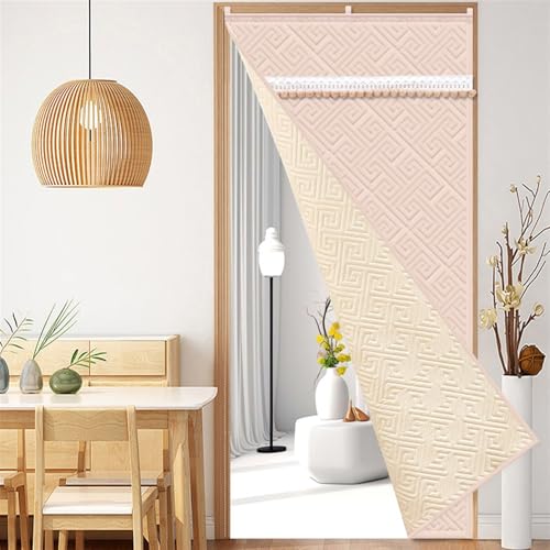 SK Studio Thermal Insulated Door Curtain: Winter Cold Shield Temporary Room Dividers Rod Pocket for Living Space, Pink, 33″ W x 75″ H