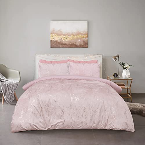 Sleepdown Marble Velvet Metallic Blush Pink Plain Reverse Duvet Cover Quilt Pillow Cases Bedding Set Soft Easy Care – King (230cm x 220cm), (5056242893899)