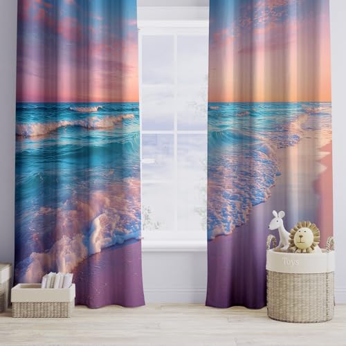 Soft Blackout Curtains Color for Bedroom, Nature Beach Sky Waves Printed Curtains, Eyelet Thermal Insulated Curtains for Nursery and parlor – W 46" x L 54" (2 Panels)