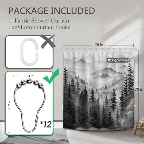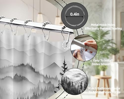 • Easy Installation: The landscape shower curtain includes 12 metal grommets and 12 metal hooks, making installation and removal quick and simple. It is simple to hang and can be taken down in no time for washing or maintenance