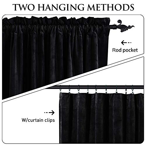 StangH Black Velvet Curtains 108 inches Long – Thermal Blackout Window Treatment Privacy Drapes with Dual Rod Pocket for Living Room/Basement Backdrops, 52 x 108 inches, 2 Panels