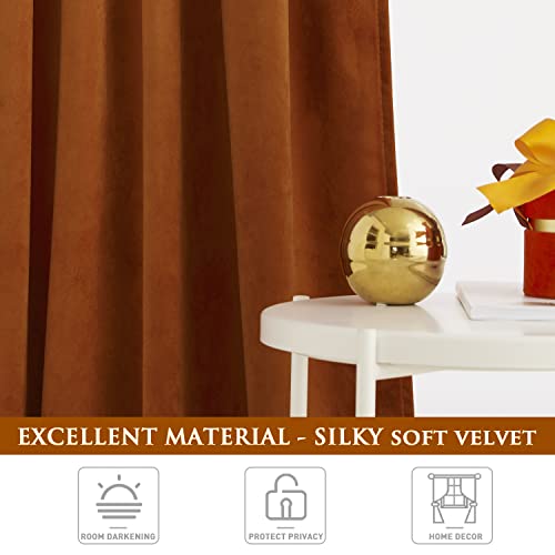 StangH Burnt Orange Curtains Velvet – 90 inches Long Blackout Thermal Insulated Bedroom Curtains Back Tab Holiday Home Decor for Sliding Patio Door/Office, W52 x L90, 2 Panels