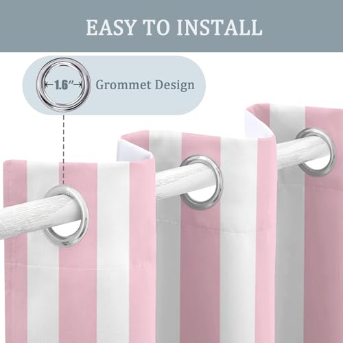 Striped Blackout Curtains for Bedroom, Pink White Stripes Curtains for Living Room 90 Drop, Patterned Window Treatments Home Decor, Thermal Eyelet Drapes, 90 x 90 Inch, 2 Panels