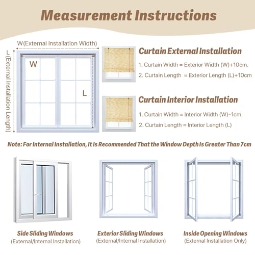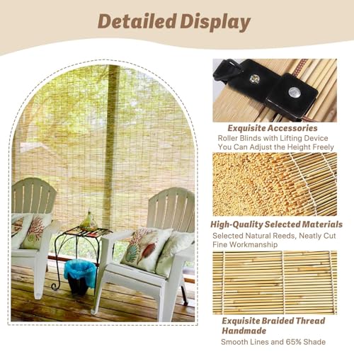 - ⧫【Natural Reed Roller Blinds】: This Beautiful Bamboo Roller Blind Is Made from Natural Reed Poles, Hand Woven, Well Made, Durable, Easy to Maintain and Long Lasting. It Can Be Used as an Elegant Decoration That Can Be Installed on Patio/Balcony/Window/Porch/Door, Suitable for All Kinds of Home Decor Styles.