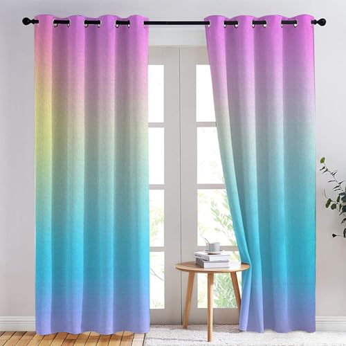 SZLYZM Ombre Blackout Curtains, Rainbow Bedroom Curtains & Living Room Curtains 90×90 Inch 2 Panels Set, Thermal Eyelet Drapes Decorative Patterned Window Treatments 90 Drop (Wj-&344)