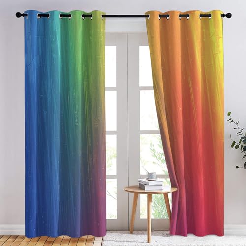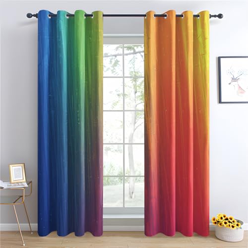 SZLYZM Ombre Colourful Blackout Curtains for Bedroom living Room, Gradient Multicolour Modern Curtains 90×90, 90 Inch Drop Curtains 2 Panels Set, Thermal Eyelet Drapes Decorative Window Treatments