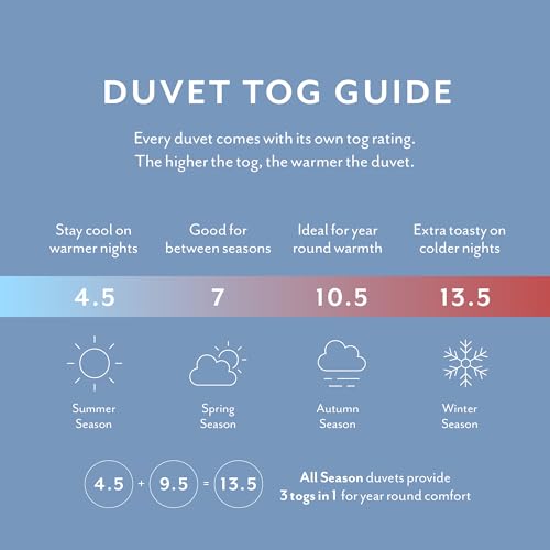 - WASHABLE DUVET – Just pop it in the washing machine at 40°C and tumble dry until dry when ready to refresh, and it’ll be delightfully soft and dry again in a couple of hours.