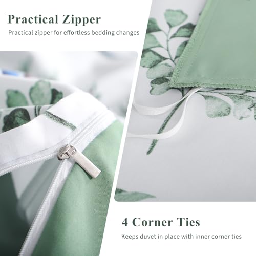 Tifschlaf King Size Duvet Cover Sets – Kingsize Bedding Set with Pillowcases, Ultrasoft Microfiber Luxury Non Iron Quilt Cover with Zipper Closure, Floral Sage Green 230x220cm