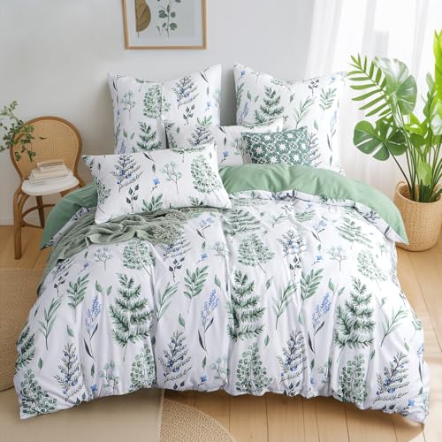 • Stylish Patterns: The king size duvet cover sets features a front pattern with delicate green foliage, blue berries and tiny flowers,bringing the nature of summer into your bedding set.The reverse side is a solid sage green, offering a harmonious balance.