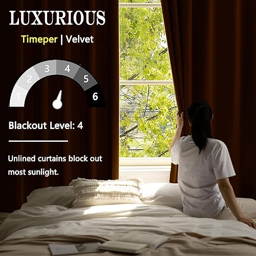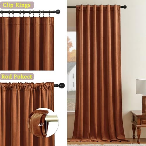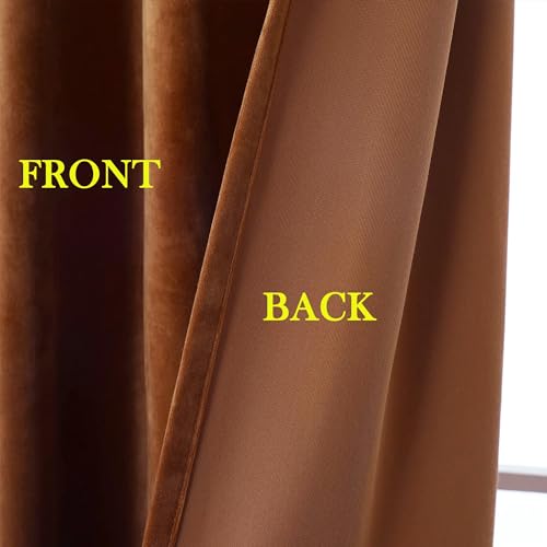 Timeper Burnt Orange Velvet Curtains 90 inches Long, Back Tab Design Blackout Curtains Thermal Insulated Window Drapes for Living Room, Bedroom, W52 x L90, 2 Panels