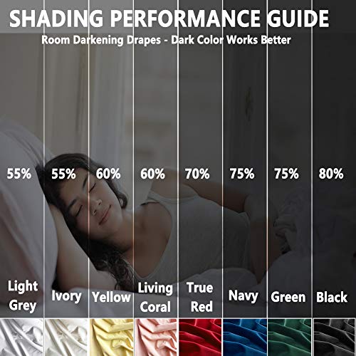 • ROOM DARKENING CURTAINS: These ultra-soft room darkening velvet draperies help block 60%~80% light and heat, 0 TV glare and absolute privacy, but allow for some natural light to come through. Smart choice of window dressing in the bedroom, living room and beyond.