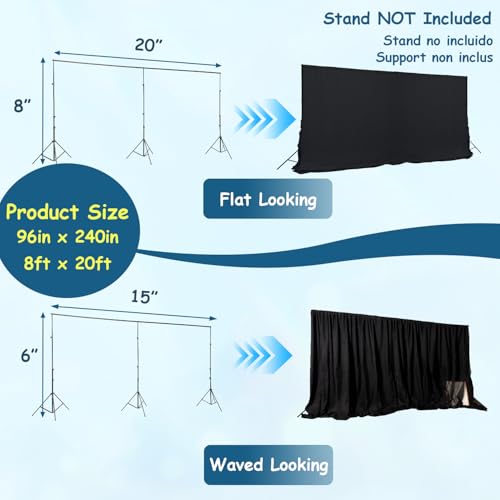 Two Layers Backdrop Made with One Piece Chiffon Tulle & Polyester. Use as Extra Wide Blackout Curtains, Stage Curtains or Garage Divider Curtain. Black, 20x8FT
